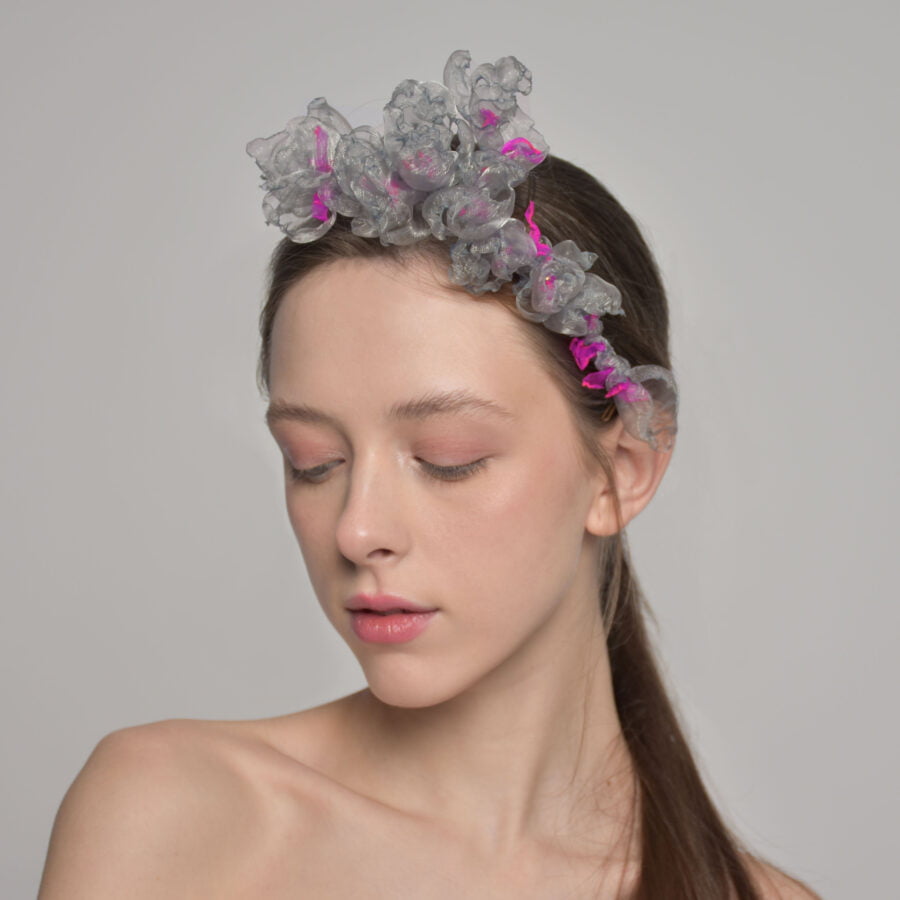 Unique fashion headpiece will suit both loose hair and hair gathered into an elegant hairstyle. This baroque-style wreath, with its whimsical form, will accentuate your beauty at a wedding, party, or performance.”